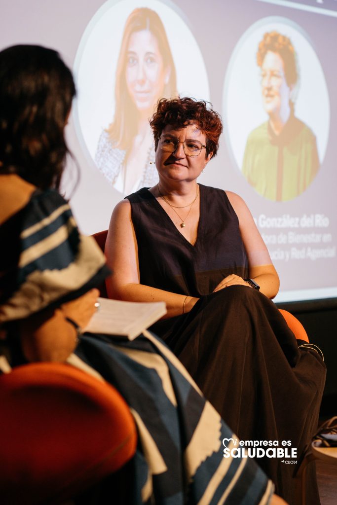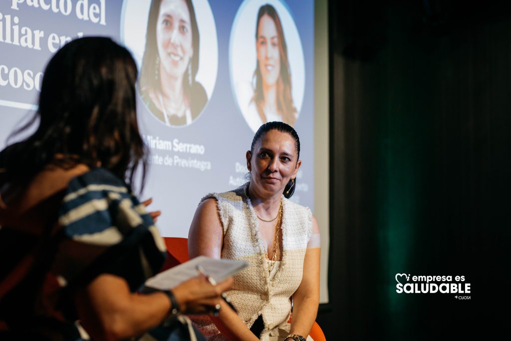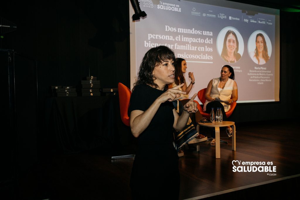Miriam Serrano habló del papel de las empresas para ofrecer seguridad y conciliación, riesgos psicosociales, bienestar familiar y una visión integral de la persona están más unidos que nunca: “Ocúpate, no sólo preocúpate, y pon atención plena en tu vida privada y profesional”. Y Nuria Pérez, docente en la Universidad Autónoma de Madrid, nos recordó algo fundamental: “Las personas somos complejas y no podemos ser por partes”.