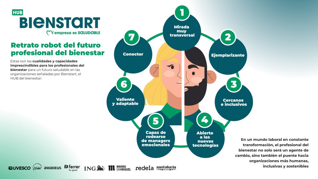 ¿Qué cualidades debe atesorar esa o ese profesional llamado a construir organizaciones para el bienestar? Con esta pregunta, Mi Empresa es Saludable cerraba el primer encuentro de Bienstart, el Hub del Bienestar laboral, el espacio de reflexión y divulgación que cuenta con la participación activa de ocho empresas ejemplares en el cuidado de sus plantillas: Amadeus, Ferrer, ING, Redeia, Redexis, Mahou, BM Supermercados, Santalucía y Wellat.